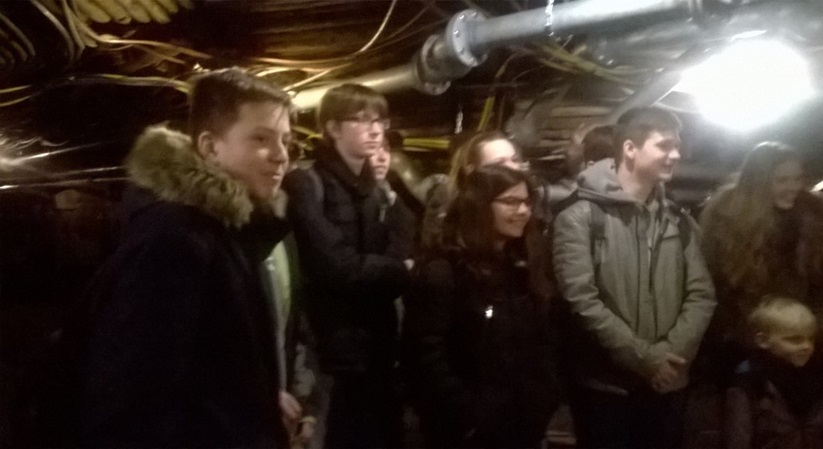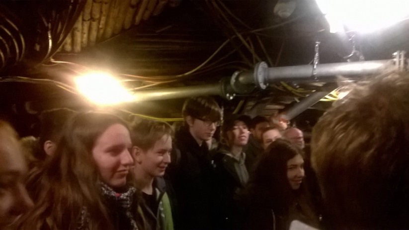 In zwei Gruppen wurden wir anschließend durch das Bergwerk geführt. Unser Bergführer erklärte uns wie die Kohle früher abgebaut wurde und wie das heute gemacht wird. Es gab einige Stationen an denen die Schüler verschiedene Dinge ausprobieren durften. Hierbei zeigten besonders der ‚Nutella-Man‘ alias Elias und ‚Batman‘ alias Leon ihre Muskelkraft, indem die die schweren Bohrhammer bedienten. Als diese angingen, sind uns anderen fast die Ohren abgeflogen – soooo laut war das!